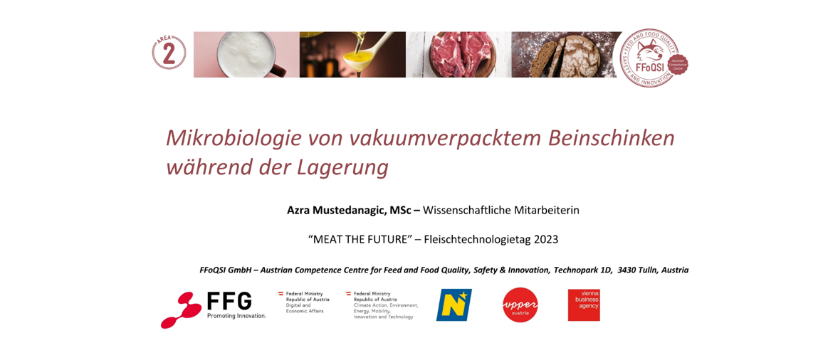 FFoQSI wurde von Research Associate Azra Mustedanagic, MSc vertreten, die mit dem Vortrag zum Thema „Beinschinken – Mikrobielle Diversität und Produktqualität?“ einen Einblick in ihr Forschungsfeld vermitteln durfte.